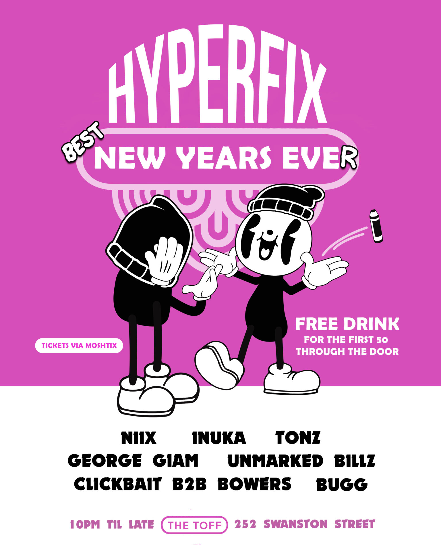 Niix, Inuka, George Giam, Tonz, Unmarked Billz, Clickbait b2b BOWERS, and BUGG – plus live visuals by Two Petty transforming The Toff into an immersive late-night playground.